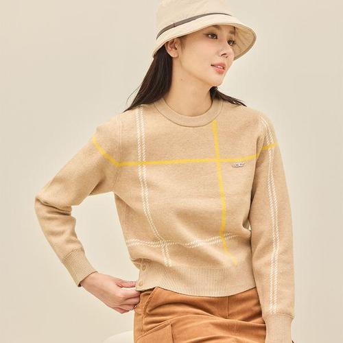 [제이투제이]여성골프웨어 방풍안감 빅체크 스웨터