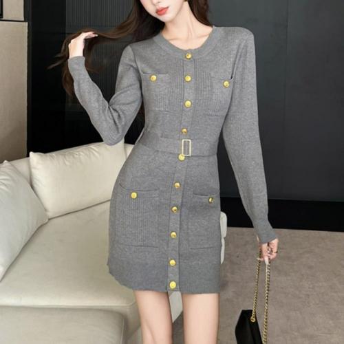 [옷자락] 여자 가을겨울 간절기 골드버튼 벨티드 니트 원피스