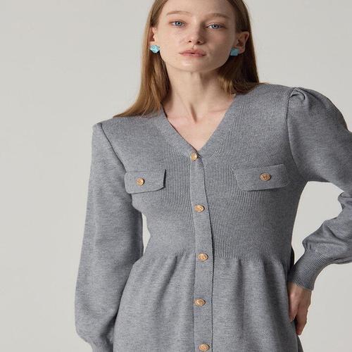 [신상오픈런]금장단추 슬림핏 골지 가디건 미니 니트원피스 (29739021)