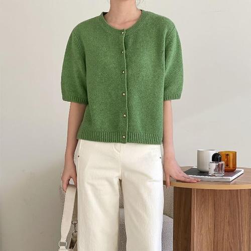 [신상오픈런]반소매 기본핏 울니트 금장단추 오픈 비스코스가디건 (28576392)