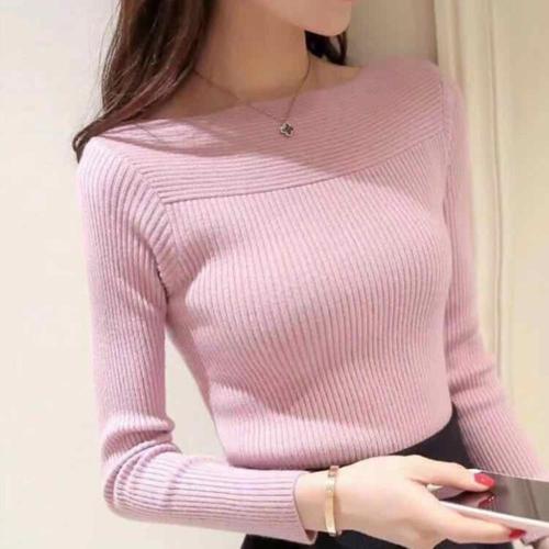 여성 롱슬리브 보트넥 볼드숄더 스웨터 티셔츠