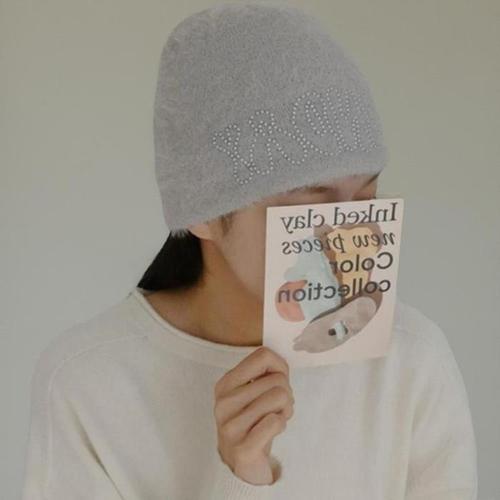 [신상오픈런]여성 Y2K 스타일 스터드 레터링 니트 모자 겨울용 무채색 털모자 (41564052)