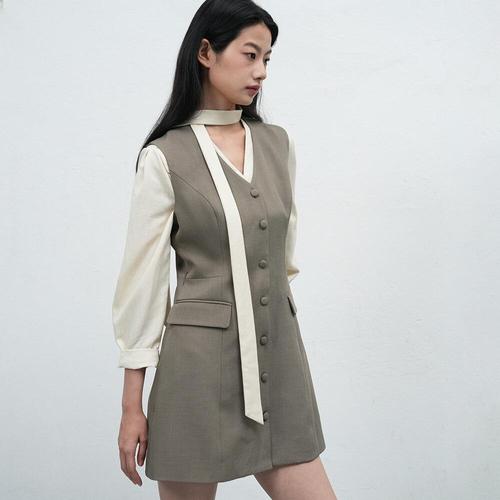 [제너럴아이디어]WOMAN 버튼 레이어드 미니 원피스 [BEIGE] / WBE4L15509