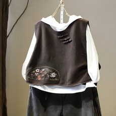 레트로 스탠드업 칼라 캐미솔 니트 조끼, 용수철 루즈한 민소매 지퍼 스웨터, 카디건 의류 액세서리, 가을