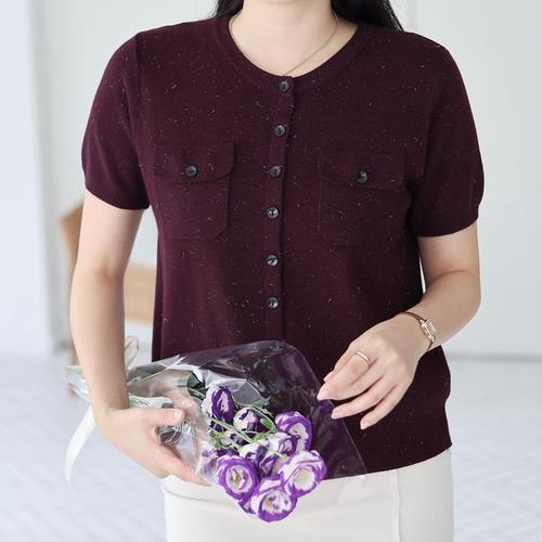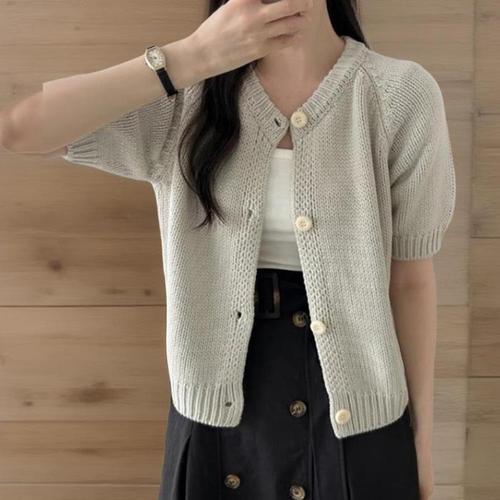 [신상오픈런]여성 라운드넥 반팔 니트 가디건 심플 단추 디자인 (40953171)