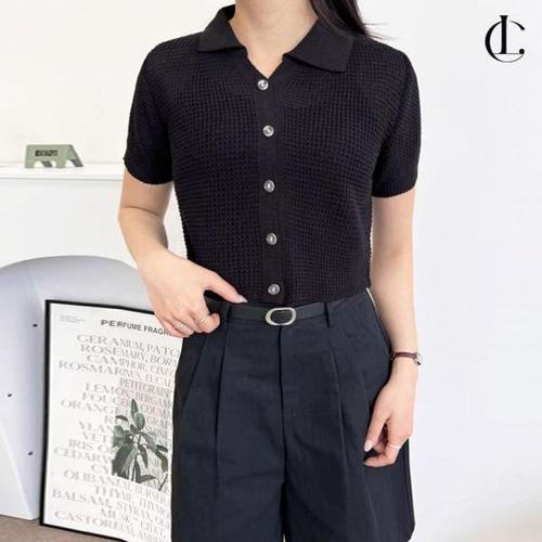 샵앤) 여성 카라 골프 반팔 단가라 니트 가디건 LB-WCD-409-블랙