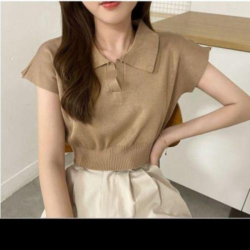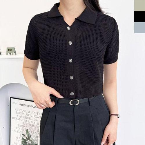 샵앤) 여성 신상 카라넥 슬림 세미크롭 반팔 니트티 NYS-WKN-4799-진그레이