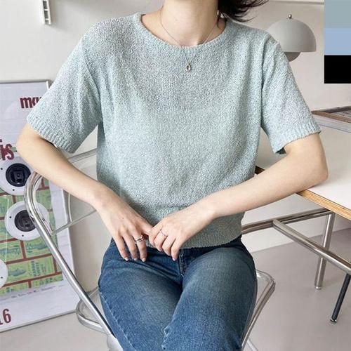 [에이치플러스몰]여자 베이직 여름 크롭 반팔 올데이 팝콘 니트 1P 라
