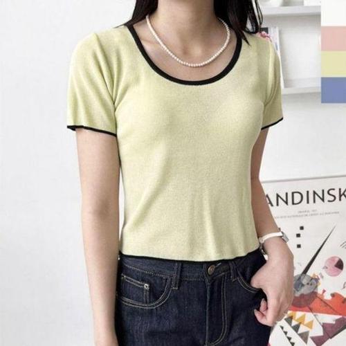 [에이치플러스몰]베이직 여성니트반팔티셔츠 캐주얼 크롭 티셔츠 필수