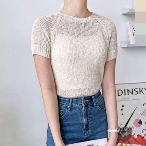 [에이치플러스몰]여자 베이직 여름 반팔 크롭 올데이 니트 1P 라운드