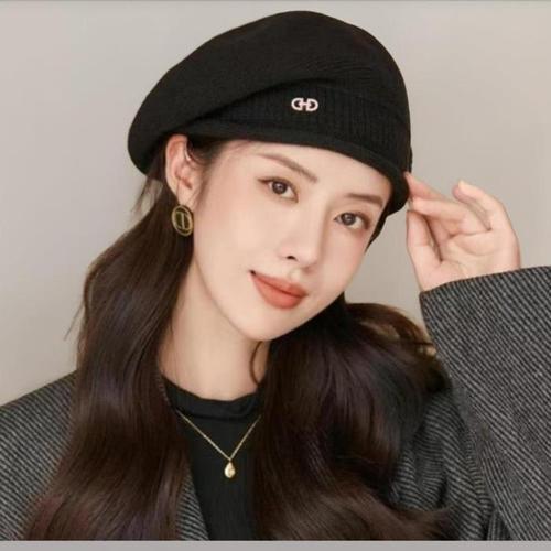[신상오픈런]여성 금색 이니셜 장식 니트 베레모 빵 모자 (44092135)