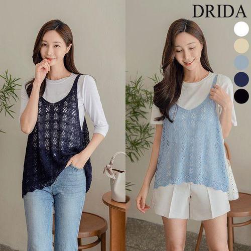 [드리다]여름 여자 니트 조끼 레이어드 펀칭 뷔스티에 빅사이즈 베스트 중년여성 엄마옷 미시 나들이 여..