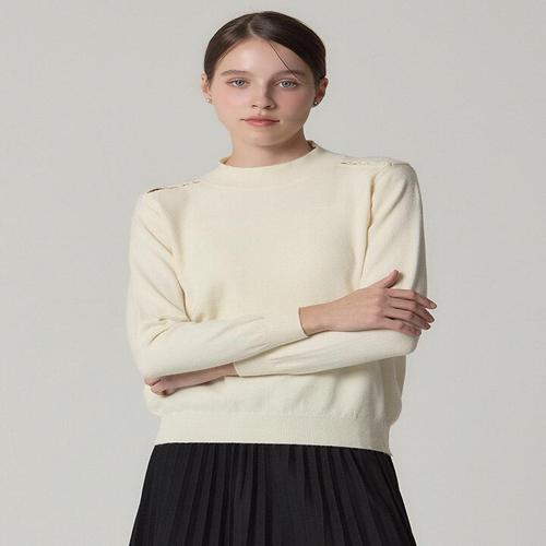 [오조크][패플단독] [오조크(OZOC)] 버튼 슬릿 숄더 반넥 니트 (택가격 71000원)