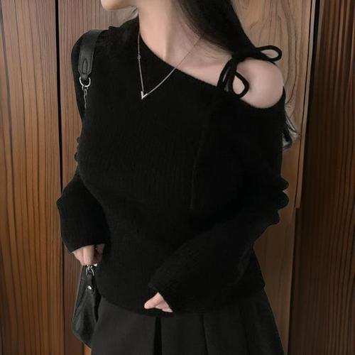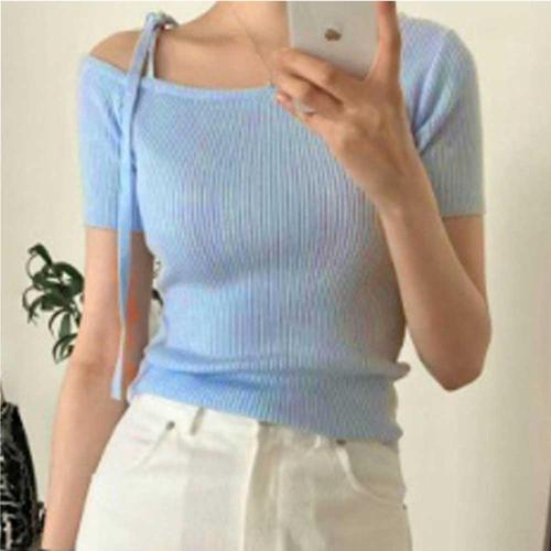[오너클랜]인기상품 여름 오프 숄더 반팔 니트 코디 여자 언발 리본 끈 [WFL9CM0_251213]