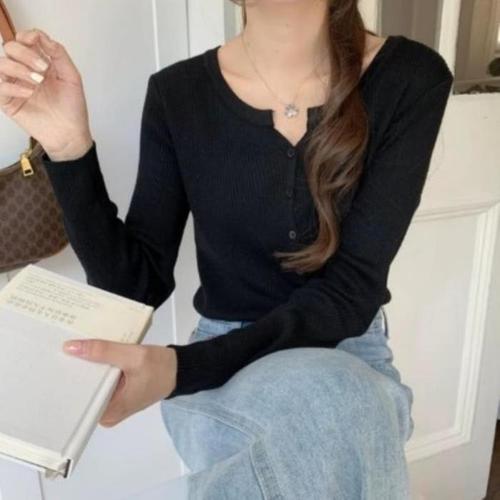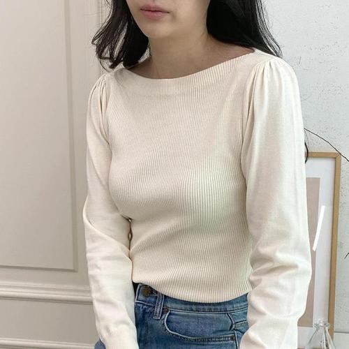 [신상오픈런]여자 심플 잔골리 퍼프 숄더 셔링 긴팔 니트 (41437591)
