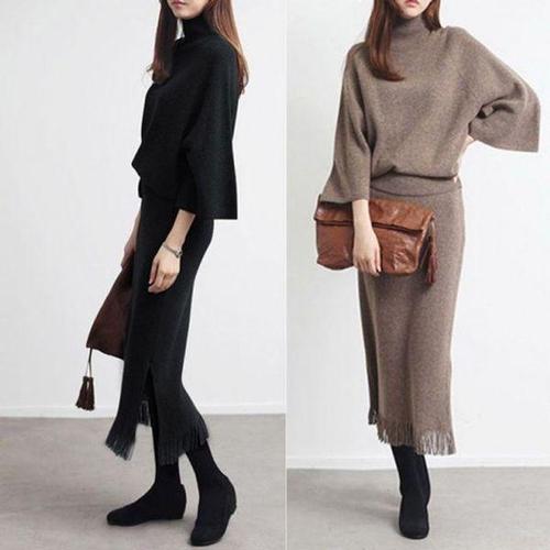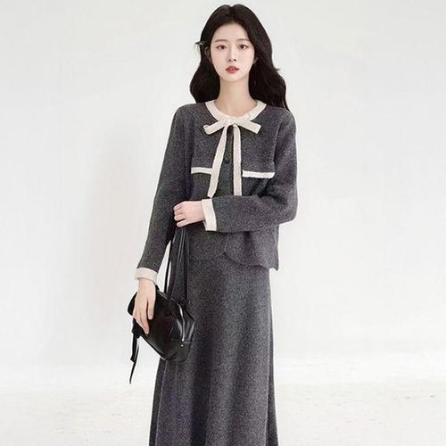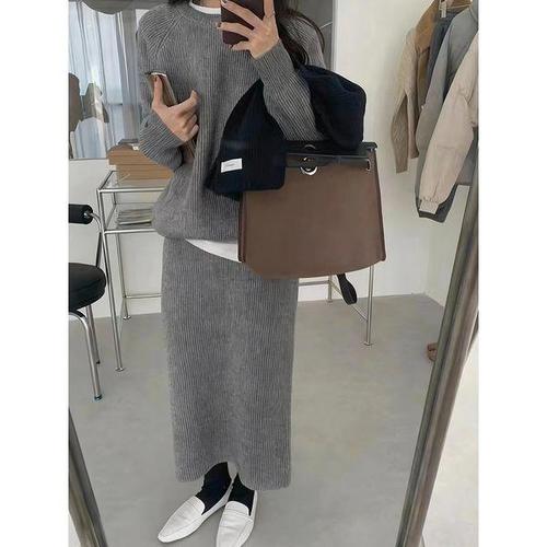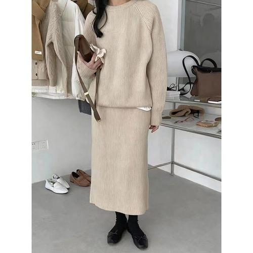 [브리치] / (55 88까지) 라운드넥 니트 스커트 세트 여성 투피스 겨울 가을 빅사이즈