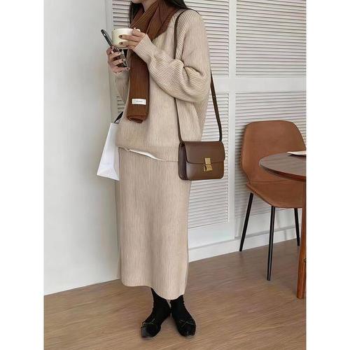 [샵앤]여성 골지 니트 긴팔티 스커트 고퀄 상하세트 LL-WSET-4926-브라운