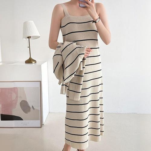 [신상오픈런]니트원피스 봄등원룩 비스코스 스트라이프가디건 투피스 (30434147)