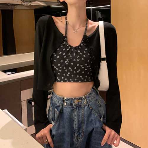 슈팅스타 / 크롭 탑 + 크롭 간절기 니트 가디건 투피스 231627
