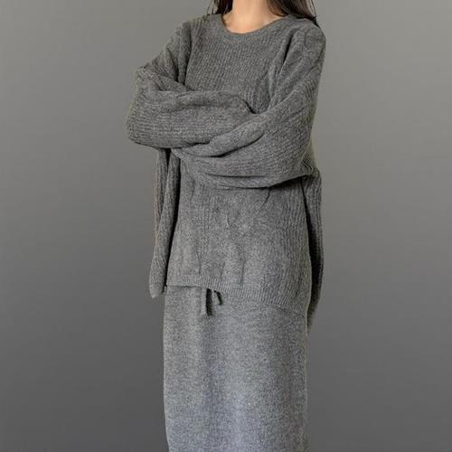 [신상오픈런]여성 가을 오버사이즈 긴팔 니트 스커트 투피스 세트 (41315785)