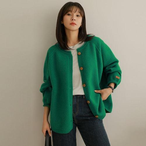 [비엔엑스]홀스 패치 컬러 버튼 니트 가디건 (BY1CD001L0)