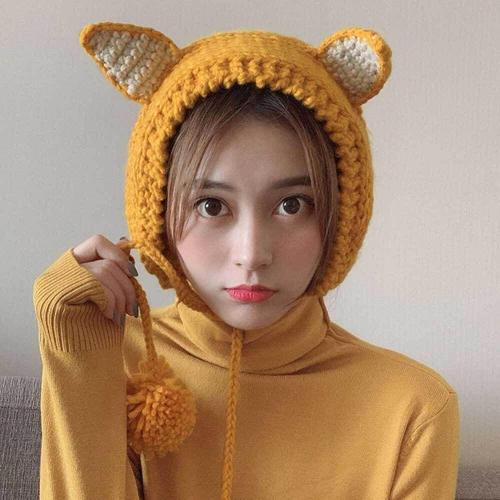 여성 따뜻한 앙고라 털 니트 귀달이 모자 귀도리 골무