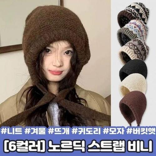 [에이치플러스몰]니트 귀도리 여자 겨울 비니 모자