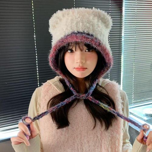 까마느 컬러풀 니트 뜨깨 보닛 귀도리