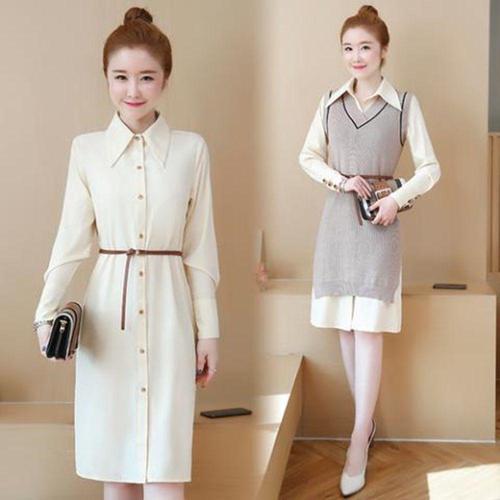 G07991 세트 롱 셔츠 니트 조끼 원피스 투피스 WFL8D3W