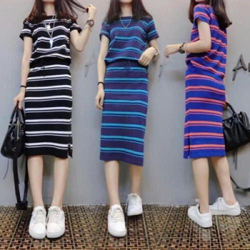 S09982 슬림 단가라 스트라입 니트투피스 니트원피스 WFL8DJE
