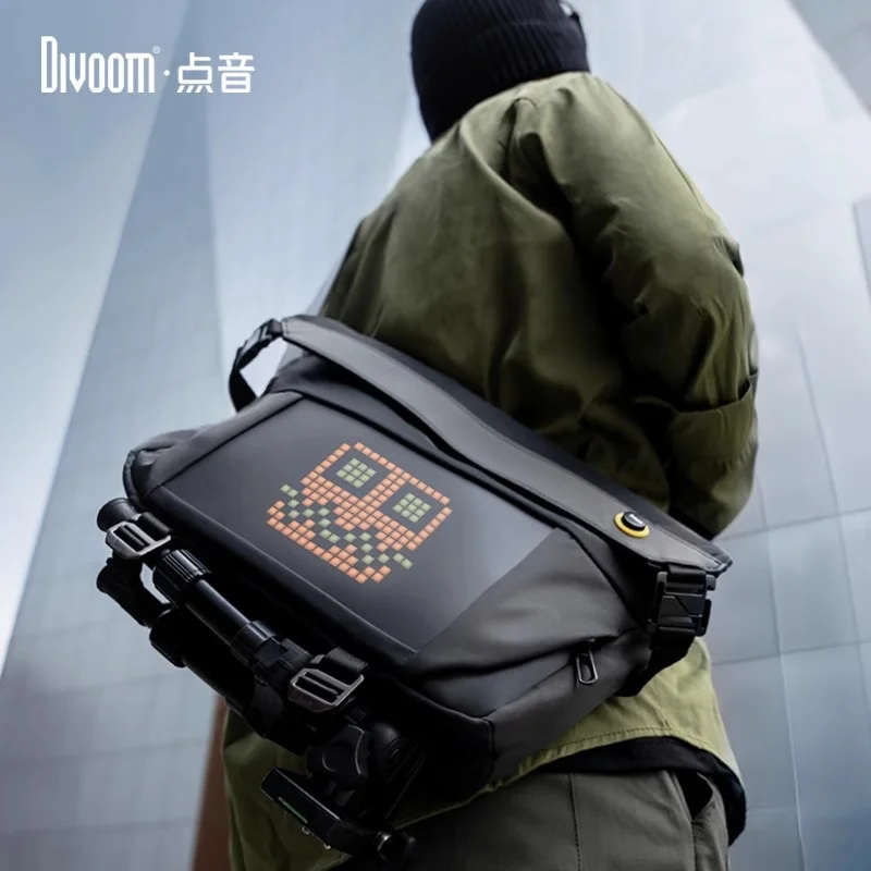 디붐 픽셀 백팩 남성용 출퇴근 크로스바디 LED 체스트 백 스트리트 트렌드 여행 가방 그라데이션 패턴 지퍼 클로저