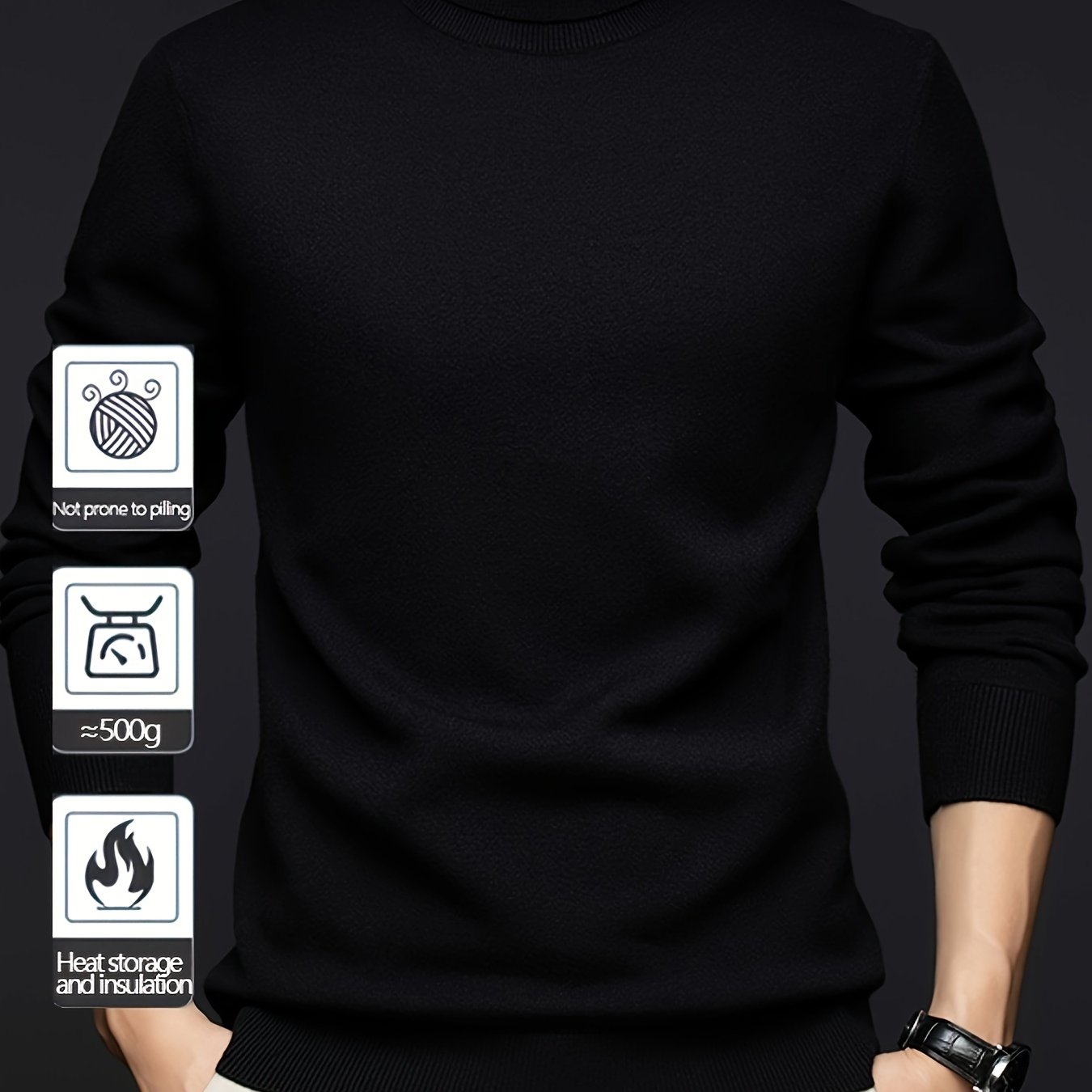TEMU 남성용 터틀넥 탑 - 겨울용 따뜻한 라운드넥 풀오버, 캐주얼 & 아웃도어 추위 방지 재킷, 세탁기 사용 가능한 긴팔 코트, 데일리 웨어, 남성용 겨울 의류, 하이넥 남성복, 고품질 남성 의류, 아빠 크리스마스 선물