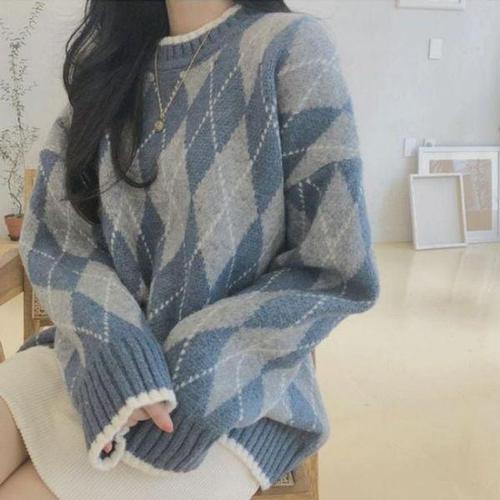 [에이치플러스몰]아가일체크 원형넥다이아 모던 울탑