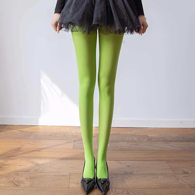 TEMU 한국 및 일본 스타일의 캔디 컬러 형광 그린 벨벳 레깅스, 높은 탄성으로 아름다운 다리 라인 연출, 스타일리시하고 트렌디한 베이스 타이츠