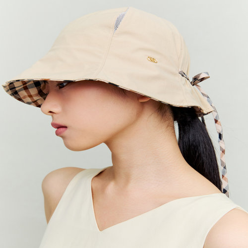 닥스 액세서리 [뒷 밴딩] 슬릿 포인트 체크스트랩 베이지 버킷햇 (DCHE6E227IV)