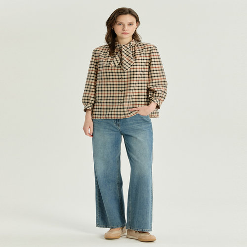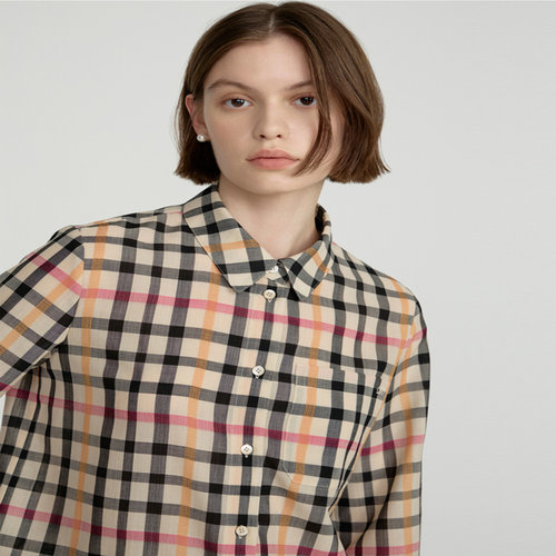 닥스 여성 베이지 타이형 하우스체크 긴팔 셔츠 (DLSH6B301I2)