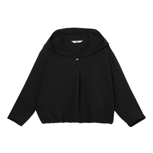 닥스 여성 블랙 솔리드 밑단 스트링 긴소매 후드 블라우스 (DLBL4D803BK)