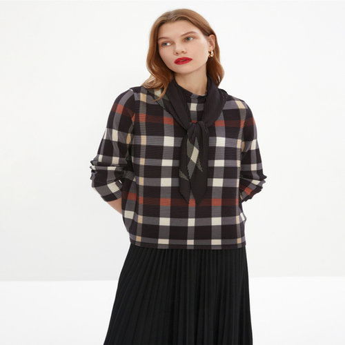 닥스 여성 [스테디셀러][SET][플리츠]블랙 체크 긴소매 원피스(원피스 탑 스카프 3P 구성) (WKDR5AP71BK)