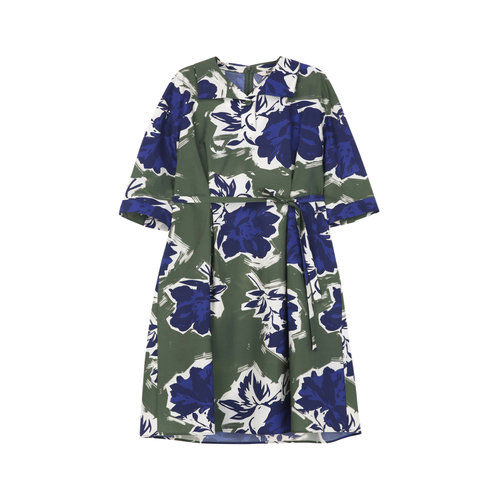 닥스 여성 다크그린 플라워 프린트 스트랩 카라 원피스 (DLDR6B306E3)