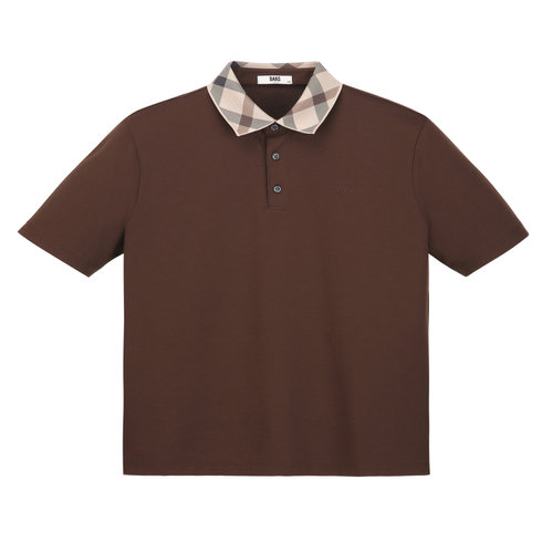 닥스 남성 [GIFT] 브라운 하우스체크 니트카라 반팔 티셔츠 (DMTS6B002W2)