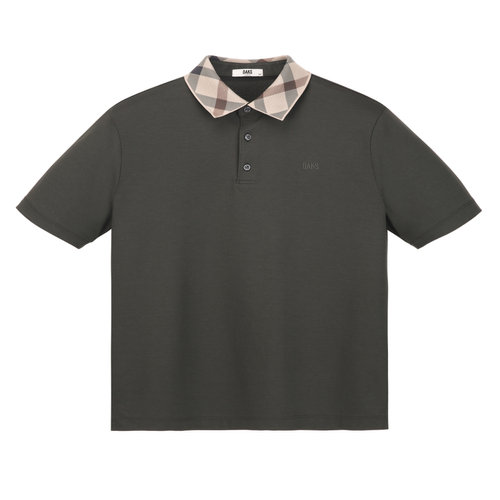 닥스 남성 [GIFT] 다크카키 하우스체크 니트카라 반팔 티셔츠 (DMTS6B002K3)