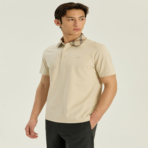 닥스 남성 [EXCLUSIVE] 베이지 빅체크 카라 티셔츠 (DMTS6A301I2)