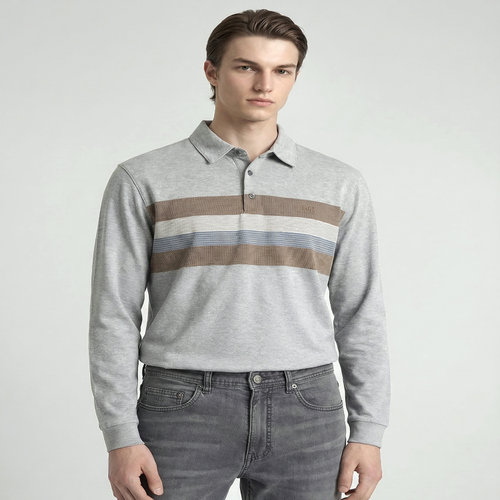 닥스 남성 [EXCLUSIVE] 그레이 스트라이프 카라 티셔츠 (DMTS6A302G2)