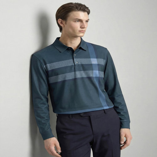 코엑티 남성 봄 가을 체크 포인트 카라 긴팔 티셔츠