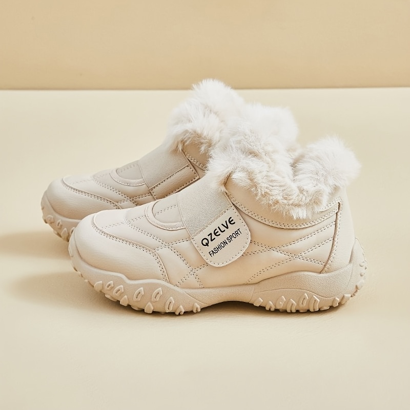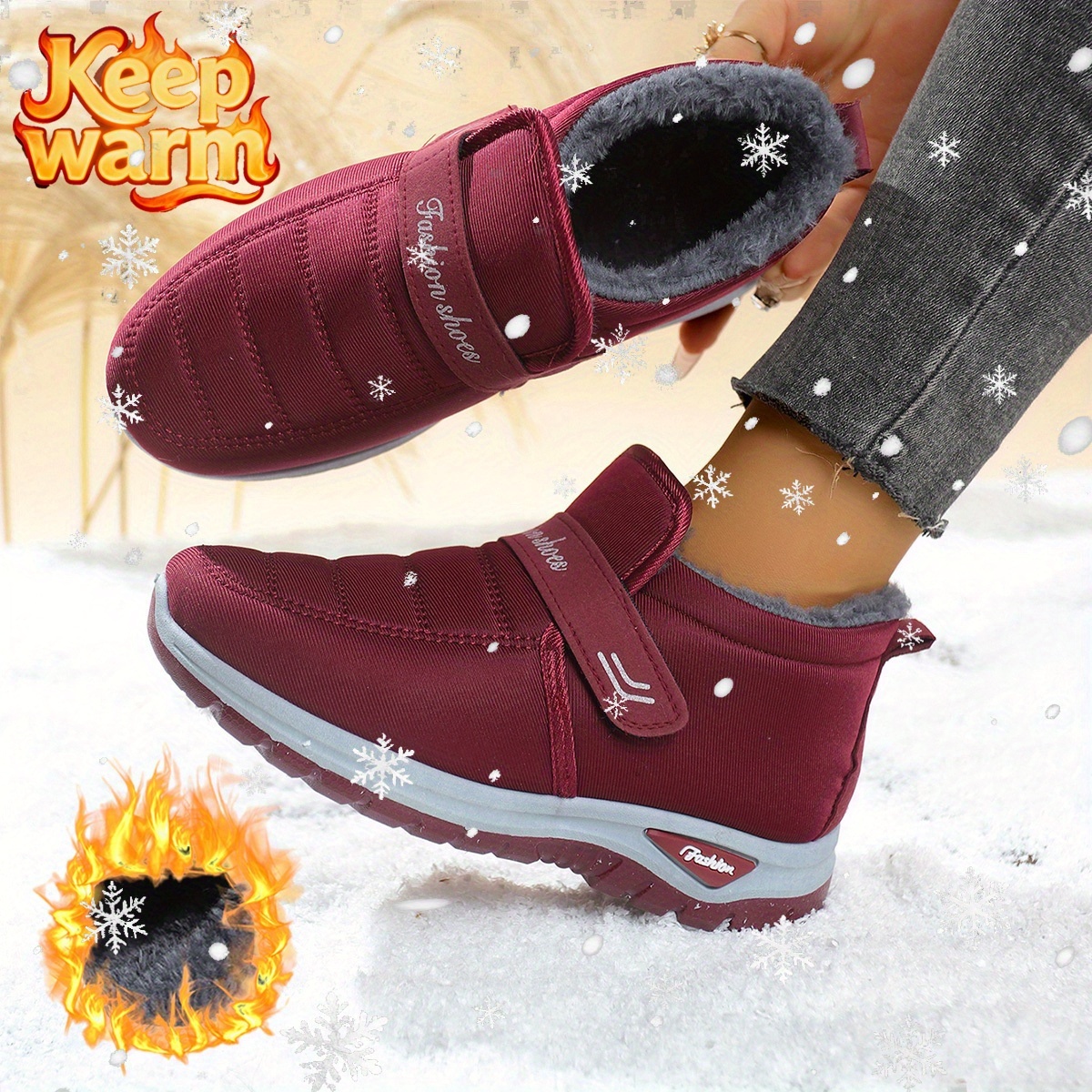 TEMU 여성용 겨울 따뜻한 플리스 안감 두꺼운 슬립온 앵클 부츠, 플러시 안감 & 아치 지지 - 올 시즌 캐주얼 신발, 합성 커버 갑피, 겨울 부츠, 내구성 PVC 밑창