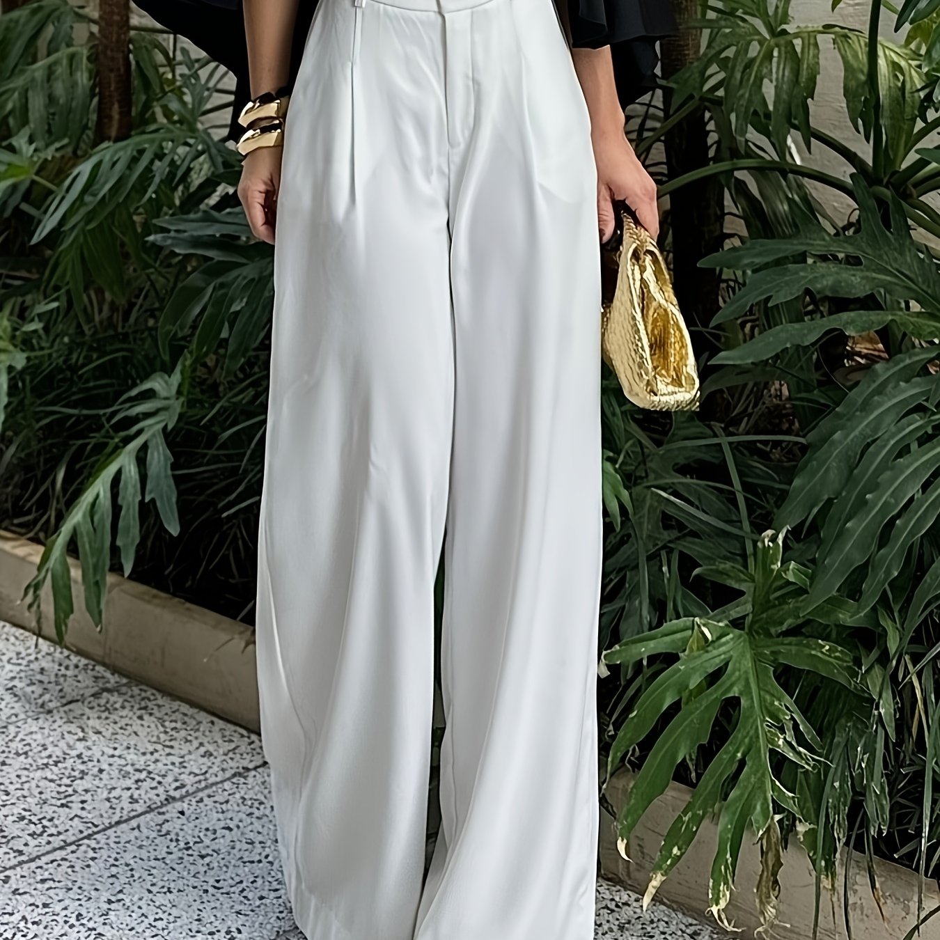 TEMU Ling Shan'S YY251218052 여성용 솔리드 컬러 하이웨이스트 와이드 레그 팬츠, 루즈 롱 트라우저, 통근복으로 적합