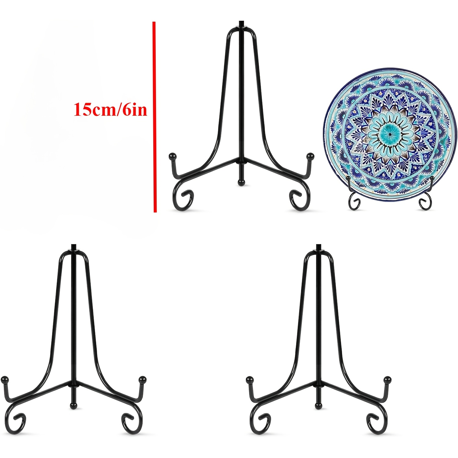 TEMU 3개 세트 블랙 아이언 이젤 스탠드 - 빈티지 스타일 사진 프레임, 장식용 접시, 태블릿 및 아트용 홀더, 내구성 있는 금속 구조와 화려한 스콜워크 디자인, 그림용 이젤, 접시 홀더, 탁상 디스플레이, 클래식 우아함, 견고한 구조