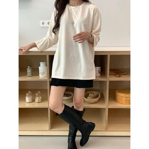 라라온 여성용 베이직 무지 긴팔 골지 티셔츠 TSP1002