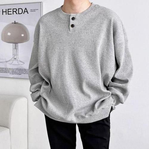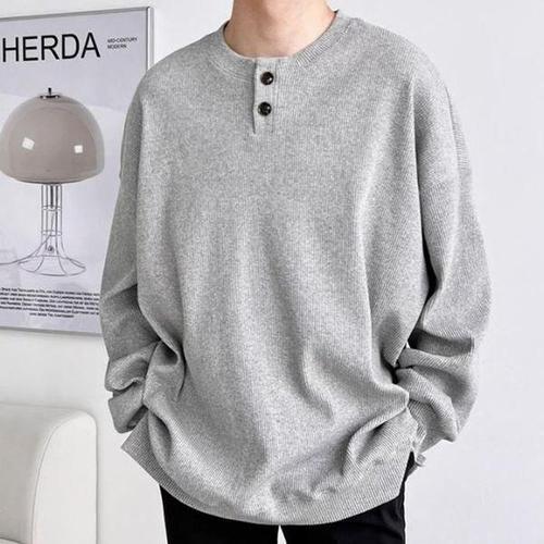 [셀러허브_여성트랜드패션]긴팔 신축성 단추 카라 골지 넓은 남성 티셔츠