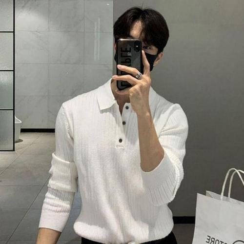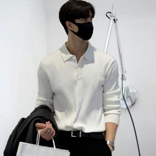 [셀러허브_여성트랜드패션]남자 버튼 골지 단정한 긴팔 신축성 티셔츠 카라